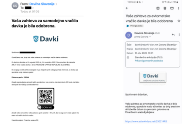 V njih prejemnike obveščajo, da je bila njihova zahteva za samodejno vračilo davka odobrena in da lahko do svojega vračila davka dostopajo preko priložene povezave.