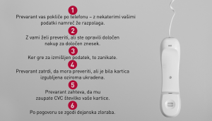 Zapišite si telefonsko številko klicnega centra, ki ste jo prejeli od izdajatelja kartice (zapisana je na hrbtni strani plačilne kartice oziroma se nahaja v Varnostnem SMS sporočilu), na katero lahko 24 ur na dan pokličete in prijavite izgubo ali krajo kartice.