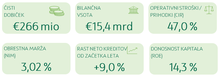 Donosnost kapitala (ROE) je znašala 14,3 % na ravni Skupine in 14,0 % na ravni banke, kar potrjuje visoko dobičkonosnost Skupine in njeno odgovorno upravljanje kapitala. Visoka likvidnost in trdna kapitalska osnova še naprej zagotavljata stabilno in odporno poslovanje.