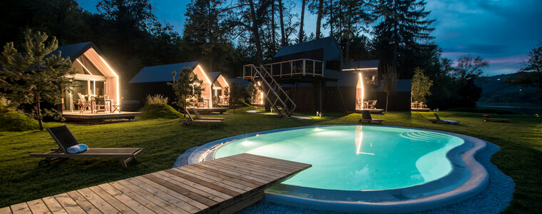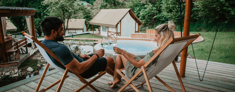 Uživate lahko tudi v nepozabnem glamping doživetju med vinogradi v luksuznih šotorih in pravljični drevesni hiški z zasebno teraso, kjer vas bo v Chateau Ramšak pričakal tudi vroč jacuzzi pod zvezdnatim nebom. |