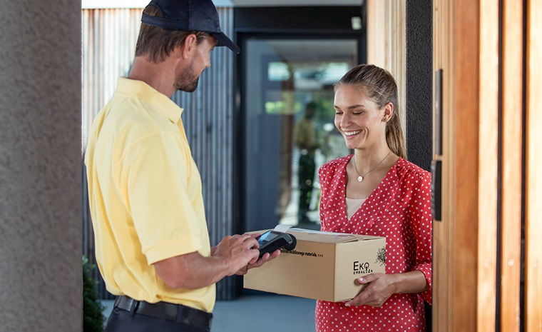 Odslej za večino gospodinjstev po državi skrbi o pravočasnem dvigu gotovine ni več. Če vam bo paket dostavljala Pošta Slovenije, vam bo pismonoša ponudil možnost plačila s plačilno kartico, torej prek POS-terminala. Na tak način boste plačilo opravili popolnoma enako, kot če bi naročeno blago kupovali v fizični trgovini in na koncu plačali s kartico. Plačila boste opravljali brez provizije. Za naročeno blago boste odšteli praviloma toliko, kot vam je sporočil prodajalec oziroma pošiljatelj blaga, ko ste potrdili spletni nakup**. Hitro, enostavno in varno.