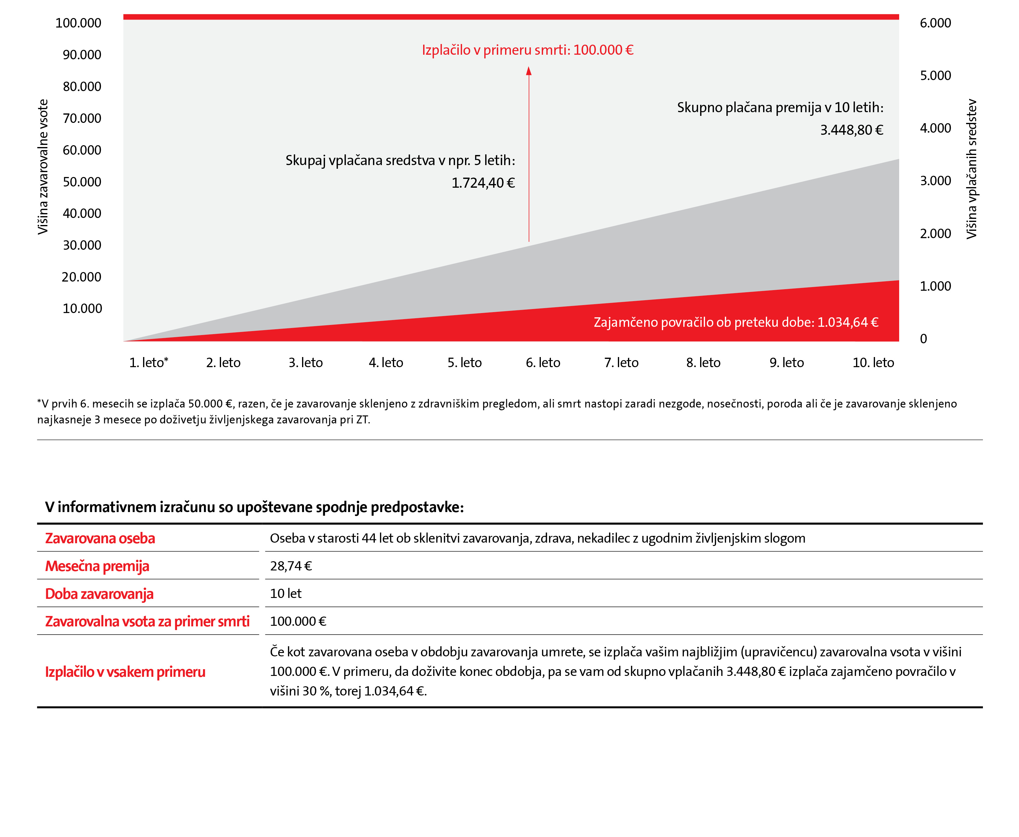 Poskrbite za finančno varnost vaše družine, če se vam zgodi najhujše, in hkrati varno varčujte. Zavarovanje vam nudi jamstvo za primer smrti ali smrti zaradi nezgode, da bo vaša družina prejela dogovorjen znesek, s katerim bo lahko premagala morebitne finančne težave.